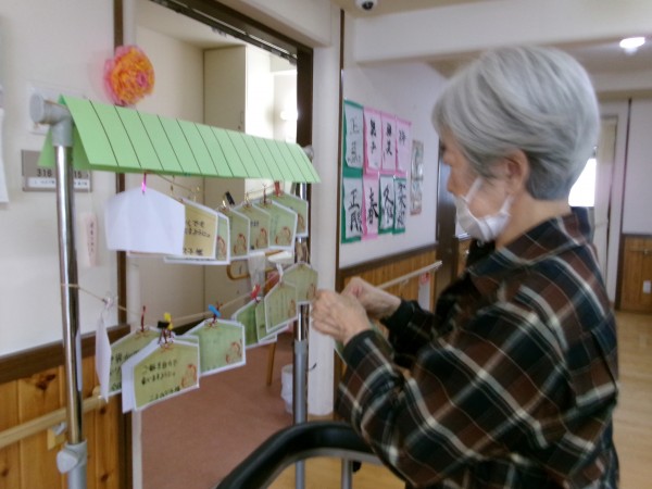 1月1日に行われたレクリエーション。皆様は、絵馬にどんな願いを込められたのでしょうか。