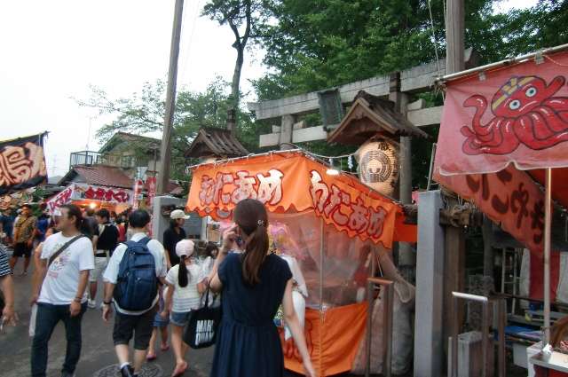 神社周りの敷地は狭いのですが、毎年たくさんの出店で賑わっています。