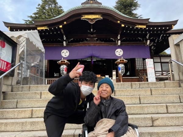 ご入居者様は、外が気持ちいいのでルンルン♪