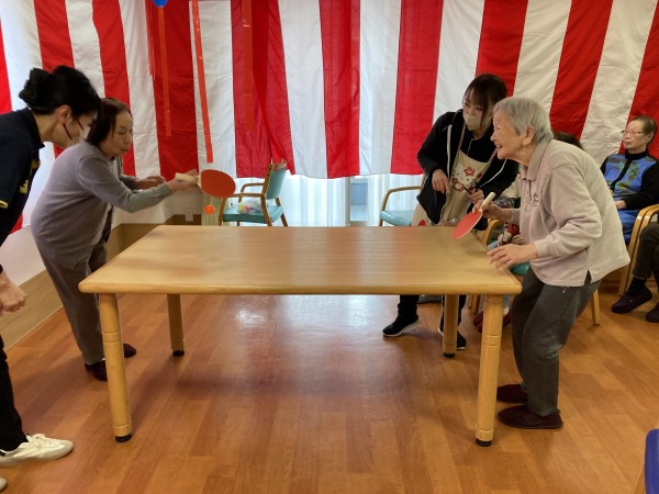 なんですが、羽子板が用意出来なかったので、今回は“罰ゲーム付テーブル卓球”で皆様に楽しんで頂きました★