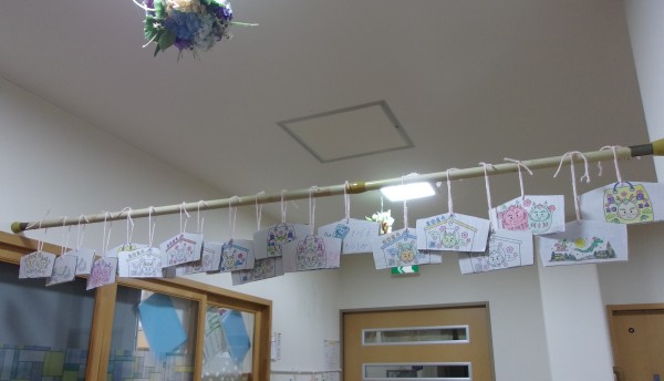 出来上がった絵馬は、エントランスにて、飾らせて頂きました(*^-^*)!!
