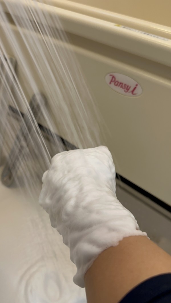 20秒ほどで全身を包むことができ、ゴシゴシと擦る必要もなく、30秒ほど置くと泡が汚れを浮かし、綺麗になります!!!!