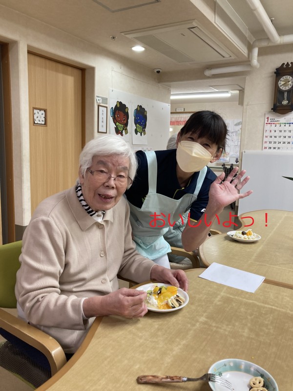 「何個たべていいの?」「楽しいね」とおやつを楽しまれており笑顔も見られました。