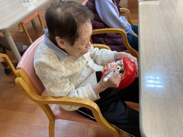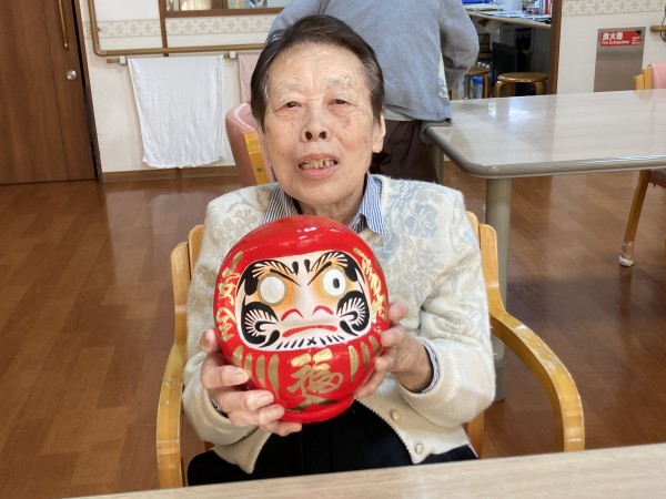 先日法事の為外出された利用者様…お戻りの際大きなだるまを持って帰られました。