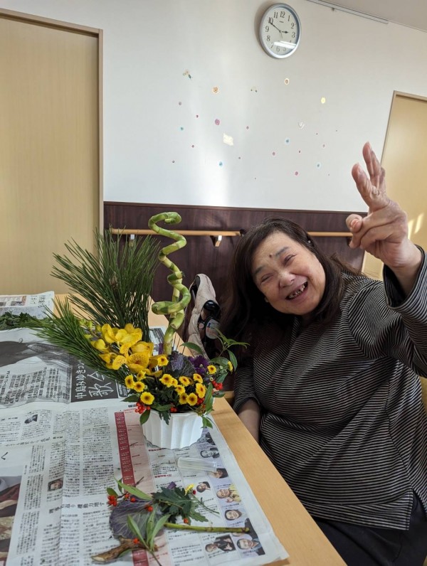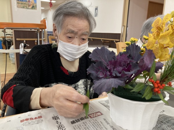 久しぶりのフラワーアレンジメントでしたが、皆さんの顔が活き活きしていて、先生も職員もやりがいのあるレクになりました!!