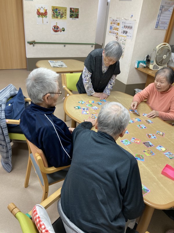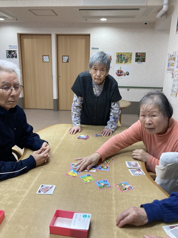 職員が読み手を行い、取り手を利用者様で行い、お手付きや、手と手を取り合い楽しく、大いに盛り上がりを見せておりました。