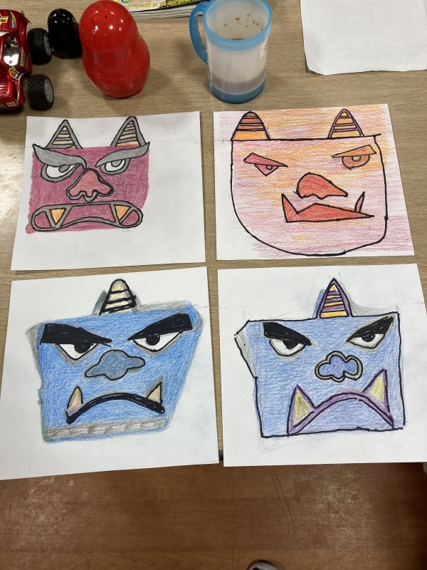 鬼の絵を見本をみながら