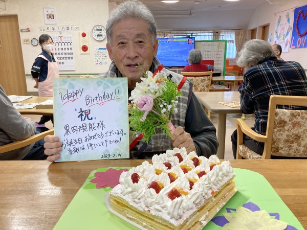今日は、一月・二月生まれの方のお誕生会を開きました。大きなケーキを作り沢山召し上がって頂きました。