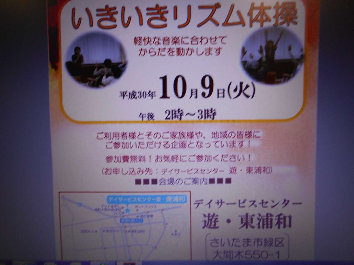 そして、来月は10月9日に「いきいきリズム体操」を