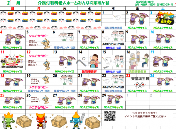 ☆2月のレクカレンダー☆