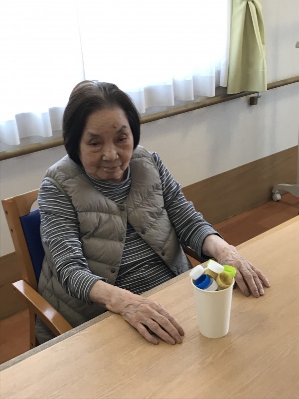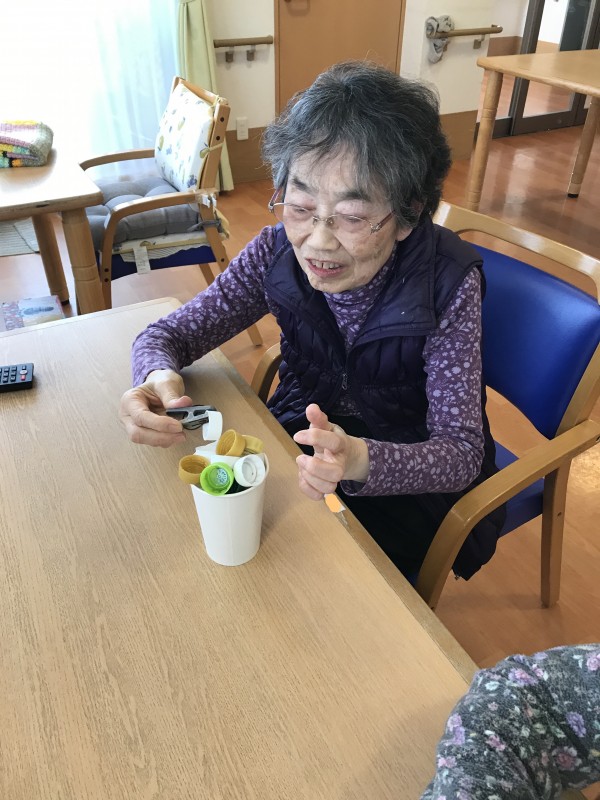 皆様、手を伸ばし器用にキャップを掴みコップに入れていました♪