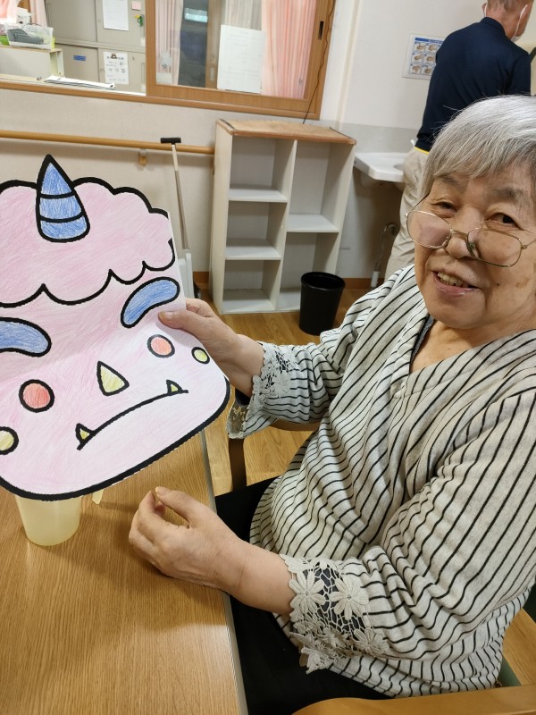 みんなで塗ると個性豊かな鬼とおかめになってきれいになりますね(*^▽^*)