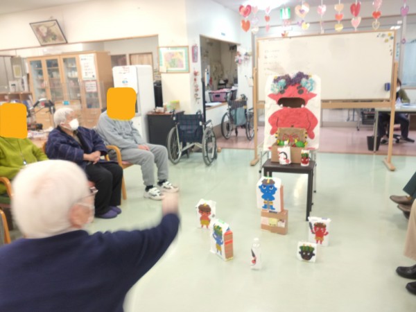 豆に見立てた玉を鬼に向かって投げてい頂きます!