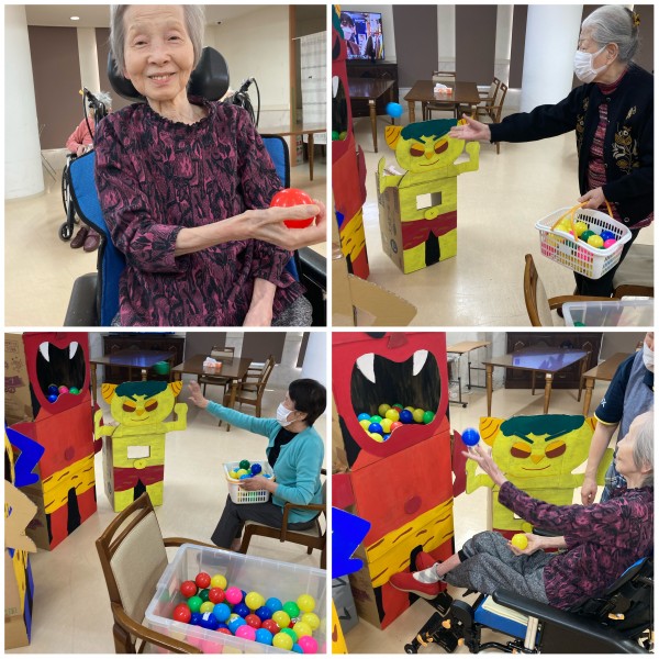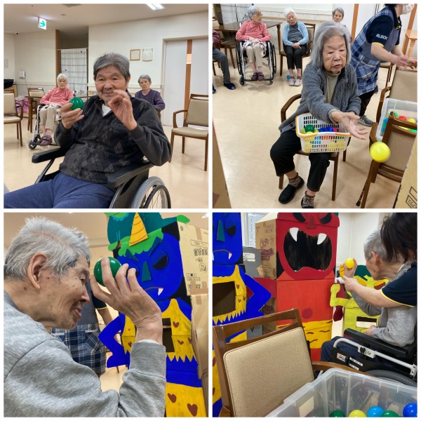 鬼に向かってボール投げをしましたよー!