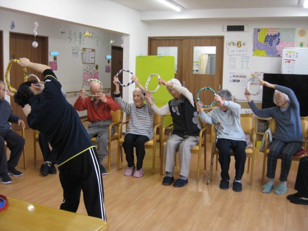 こんにちは! グループホームみんなの家・あきがせの介護ブログです! よろしくお願いいたします。 今日は輪っか体操を行いました。そのご様子をお知らせいたします!