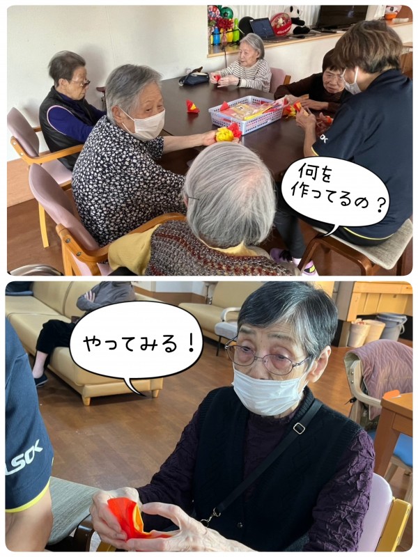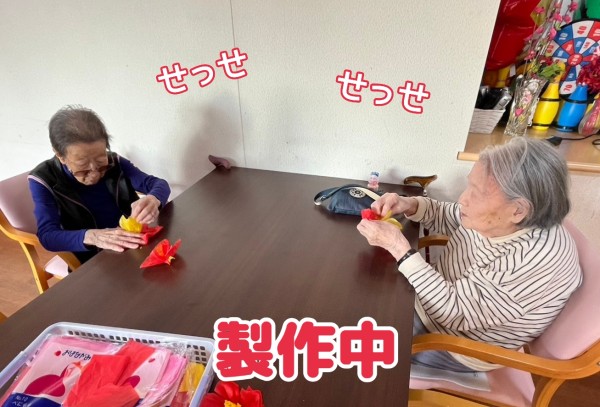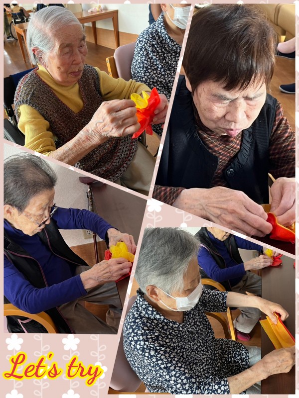 赤と黄色のお花紙で、作っていたものは…