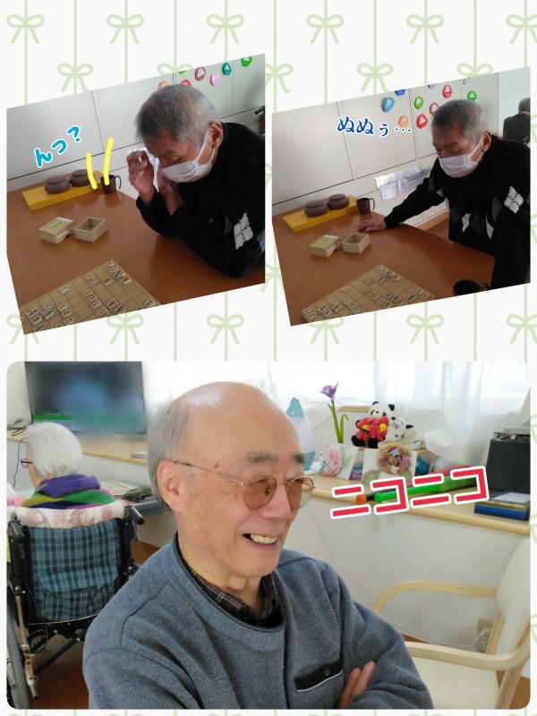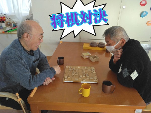 本日はこちらの殿方、ボランティアの方と将棋で勝負です。
