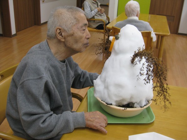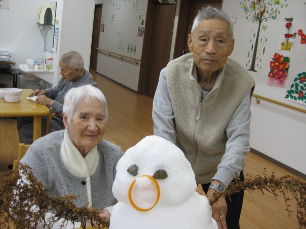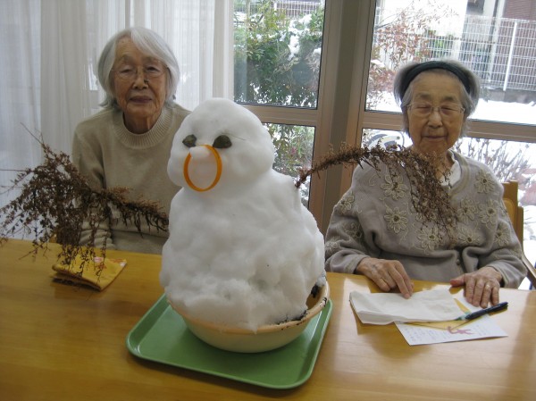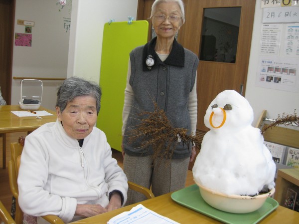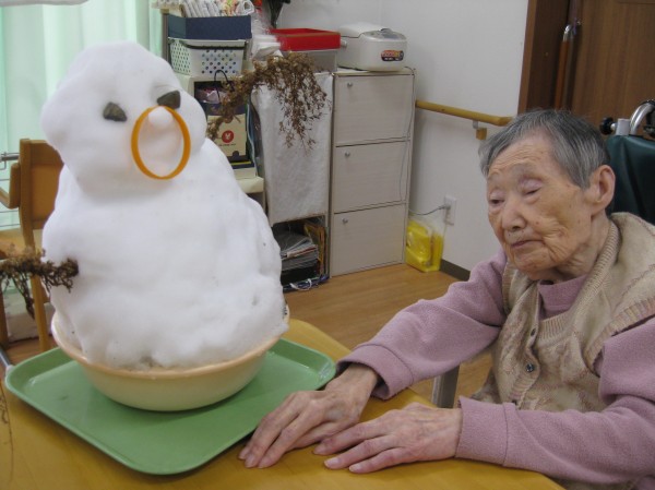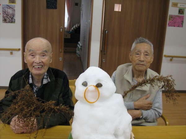 こんにちは! グループホームみんなの家・あきがせの介護ブログです! よろしくお願いいたします。2/7雪が降ったので雪だるまを作りました。