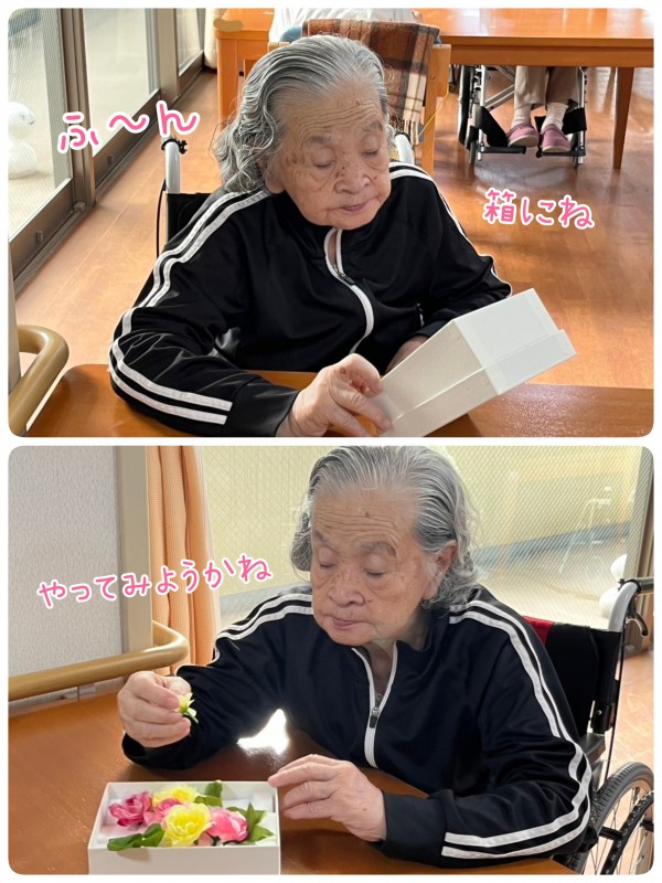 へぇ!空き箱とスポンジと造花でフラワーボックスを作っています。