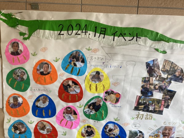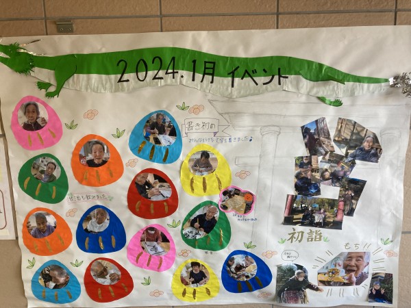 ★☆1月行事イベント初詣・書初めレクリエーション記念写真を掲示板掲載2024年✨