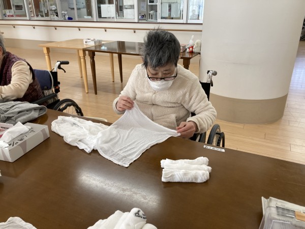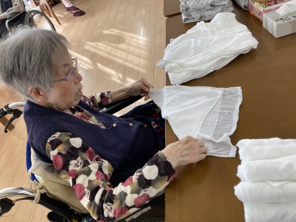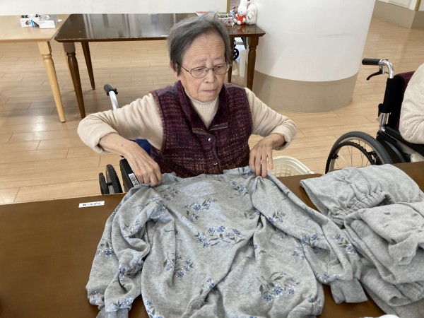 ご利用者様が集まり衣類を畳んで下さいます(#^^#)