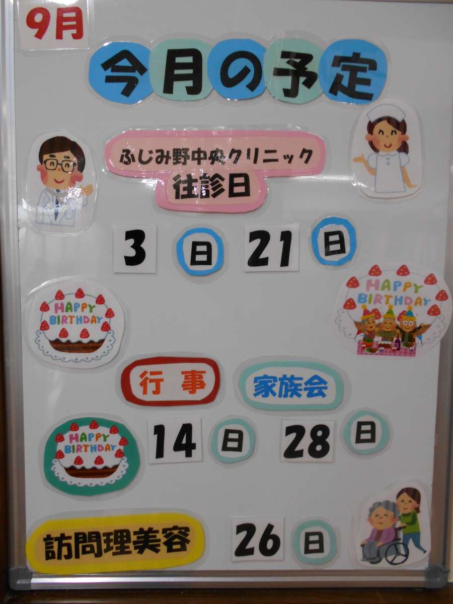 その他の予定としては、訪問診療や訪問理美容、家族会(運営懇談会)や防災訓練を行う予定です。