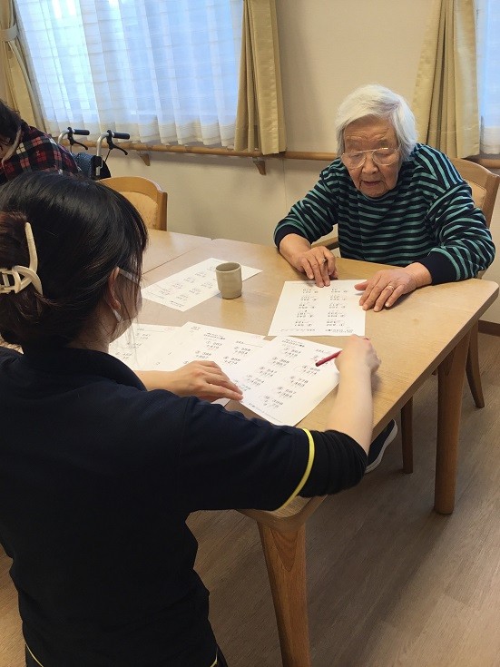 午後のレクリエーションの中で、脳トレを企画しています。