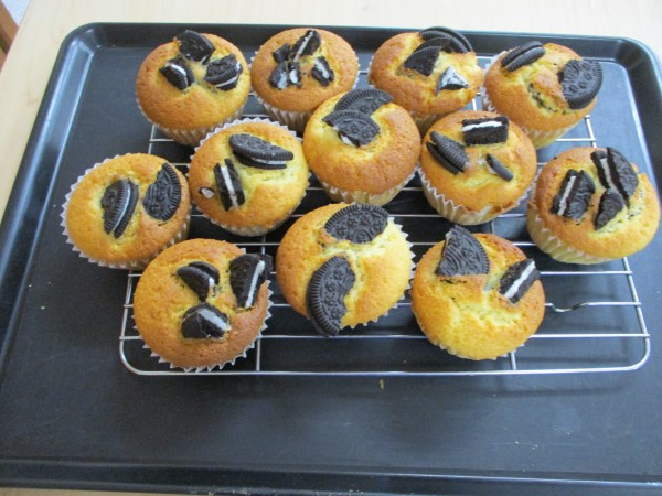 今はやりのクッキーマフィンを作ってみました! 中にはトロッとしたチョコが顔を出しますぅぅ????
