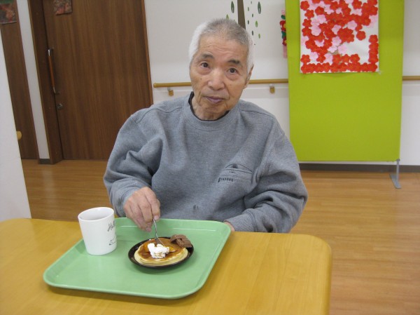 こんにちは! グループホームみんなの家・あきがせの介護ブログです! よろしくお願いいたします。 今日はバレンタインデーです。ホットケーキとチョコ添えのおやつを作りました。そのご様子をお知らせいたします!