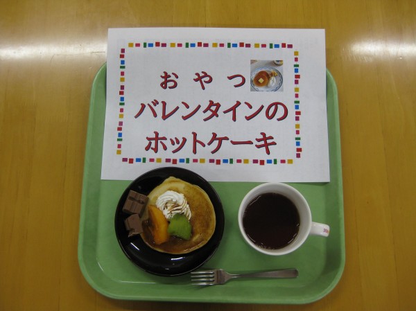 バレンタインデーにホットケーキとチョコ添えのおやつを作りました( ^ω^)・・・