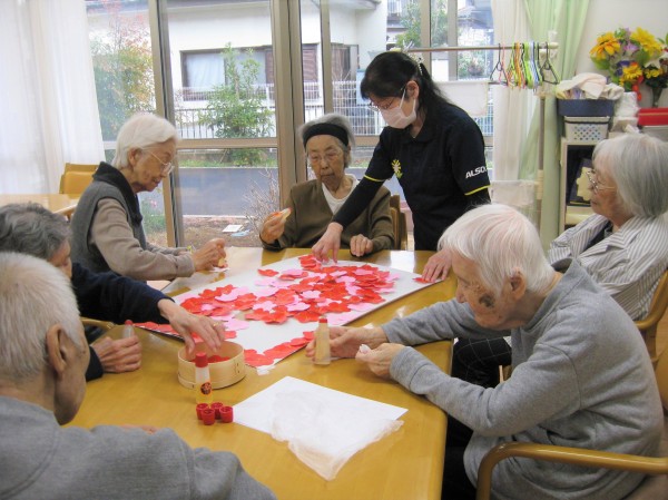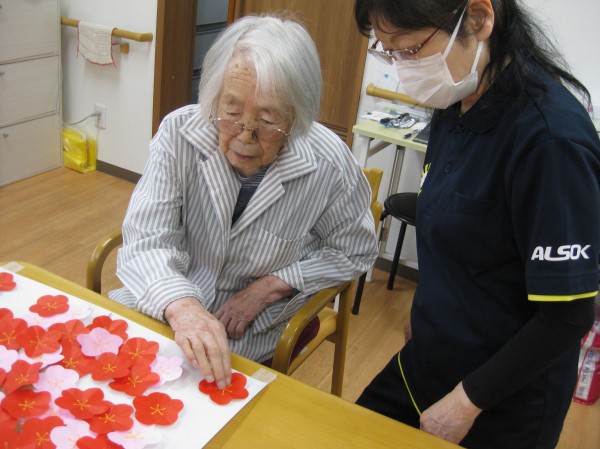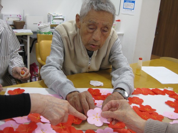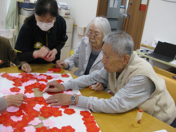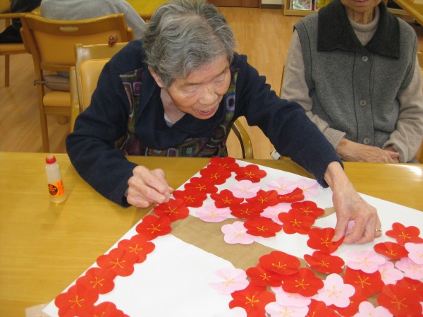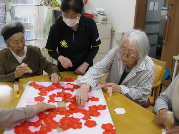 こんにちは! グループホームみんなの家・あきがせの介護ブログです! よろしくお願いいたします。 今日は梅の花の貼り絵を行いました。そのご様子をお知らせいたします!