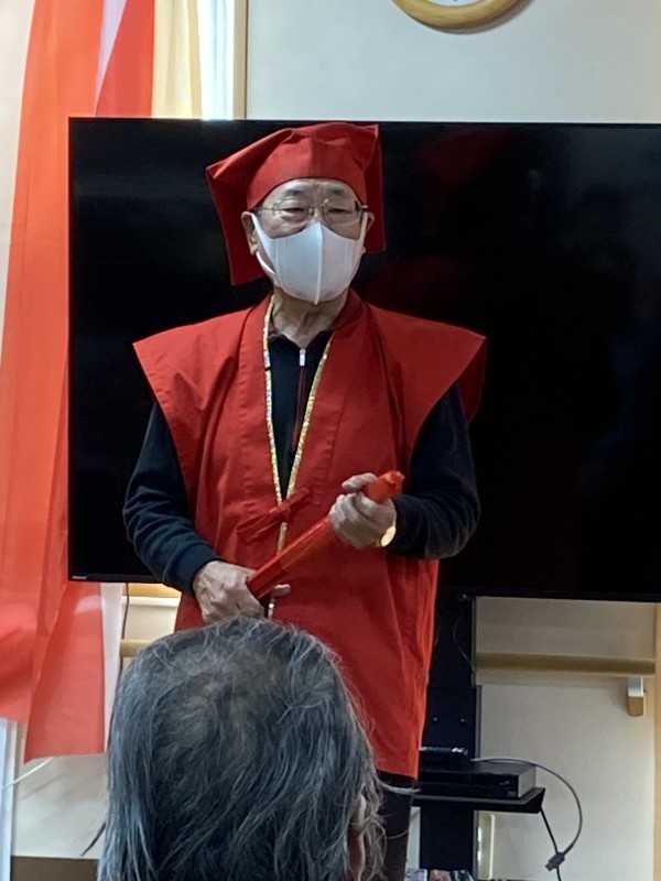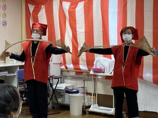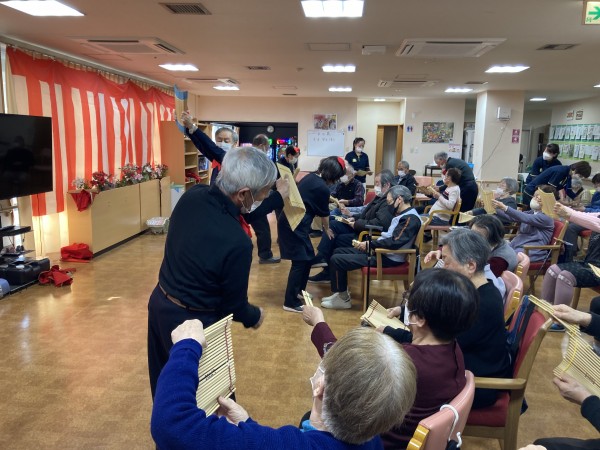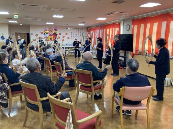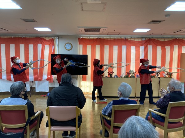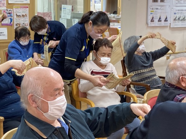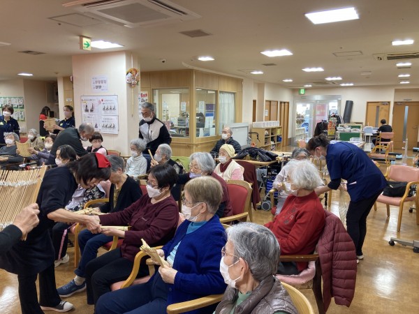 「尾間木玉すだれの会」さんがご利用者様全員分の玉すだれを用意して下さって、全員で玉すだれに触りました。