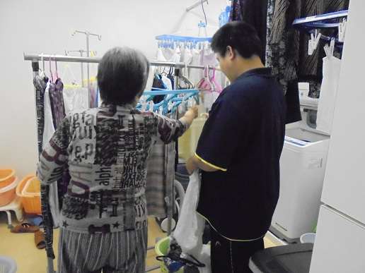 グループホームは共同生活なので、家事も分担して行い、食事の片づけや洗濯等、職員と一緒に行います。(写真③)