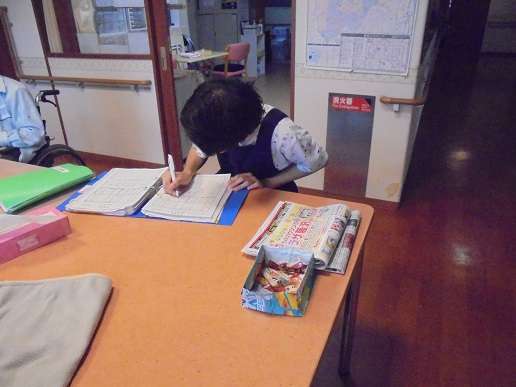 ご利用者様の情報は職員みんなで共有します。そのために毎日記録をつけています。(写真④)