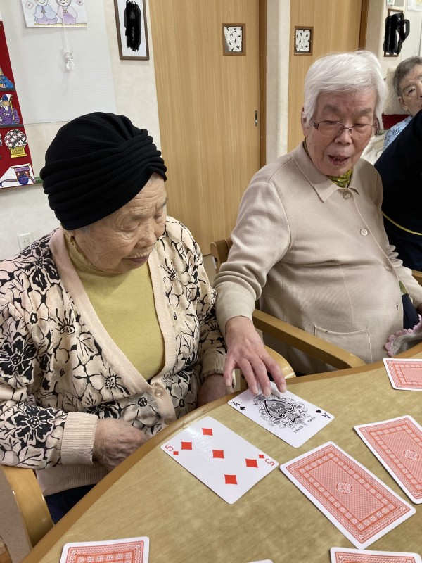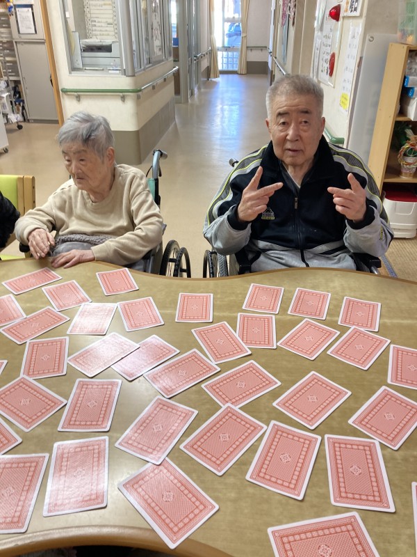 こんにちは!今日のレクリエーションはトランプで神経衰弱を行いました。めくってその場はカードを覚えますが職員も直ぐに忘れてしまいなかなか終わらずでした('◇')ゞ でも何とか時間をかけてゲーム終了!wwwww 職員も利用者様も盛り上がり笑いも出て楽しいひと時となりました。