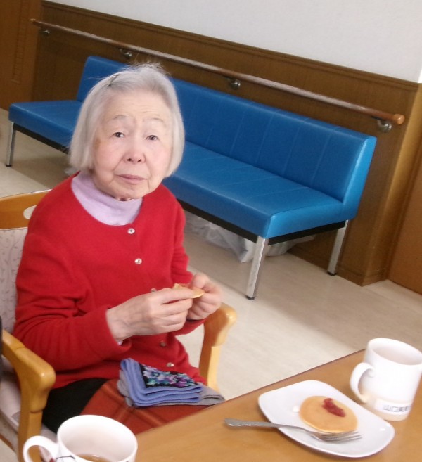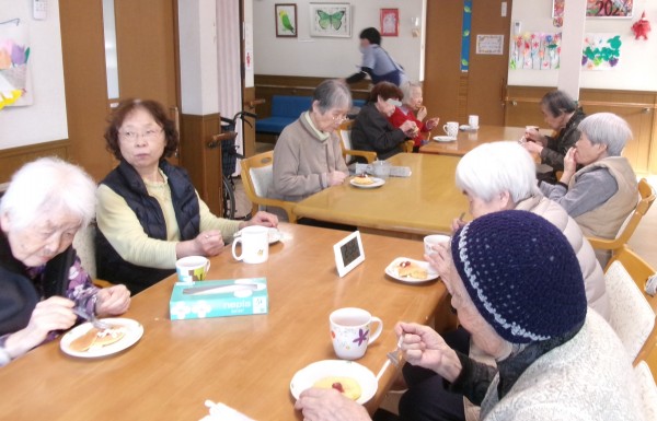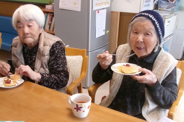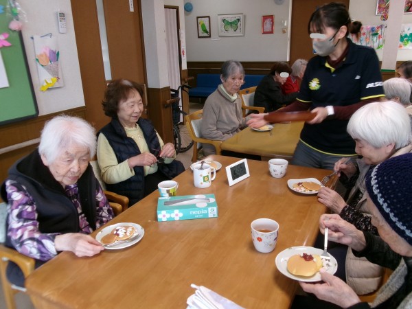 3/4 おやつは手作りパンケーキ!ひなあられも添えて!(^^)!