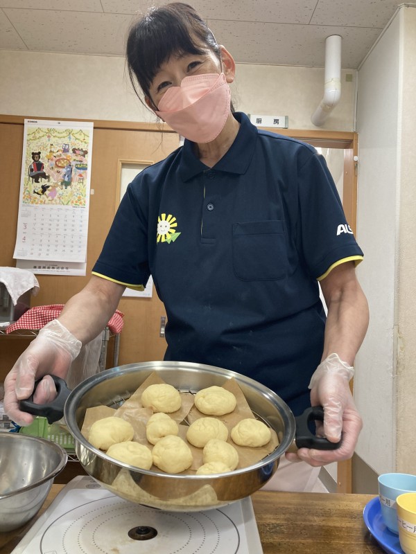 こんにちは(^▽^)/ 今日のおやつは手作りメロンパンとバターロールを利用者様と一緒に手作りしました!皆様生き生きと夢中で発酵されたパン生地を丸めて楽しまれました。自分で丸めてお作りになられた焼きたてのパンを召し上がり「おいしい!」「もっと食べたい」と大変喜ばれて笑顔も見受けられて楽しい充実した1日となりました(^▽^)/ 今度は何を作りましょうか?思考中です。