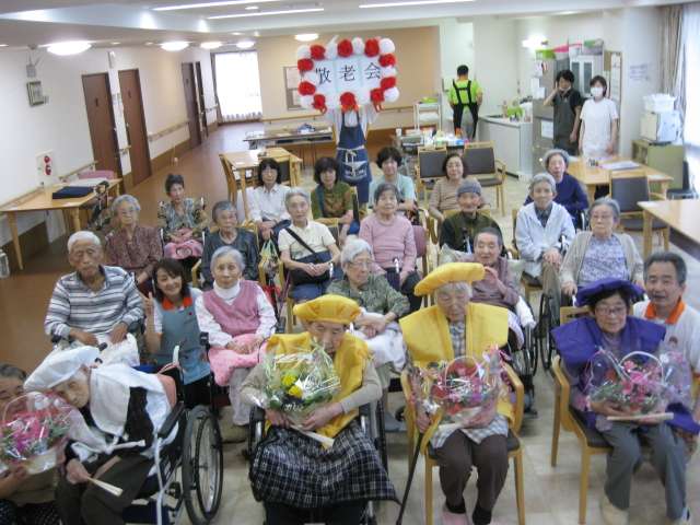みんなの家・町田相原では昨年より、敬老会は式典形式で行っております。今回も来賓の方・ご家族様代表の方の祝辞や御挨拶を予定していましたが、利用者様で風邪をめされたかたが増えてきていたため、急遽フロアごとの簡単なお祝いに変更となりました。残念です。