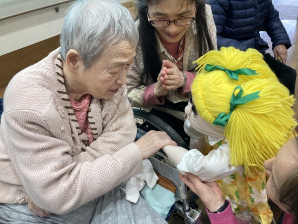 レクレーション終了後、スタッフどうしで腹話術を真似てやって見ましたが