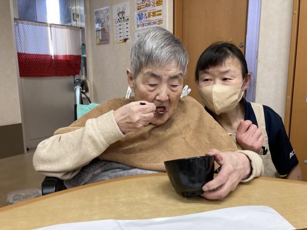 こんにちは!(^^)! 利用者様の声で「おしるこ食べたい」とのことで今日はおしるこをみんなで作りました。
