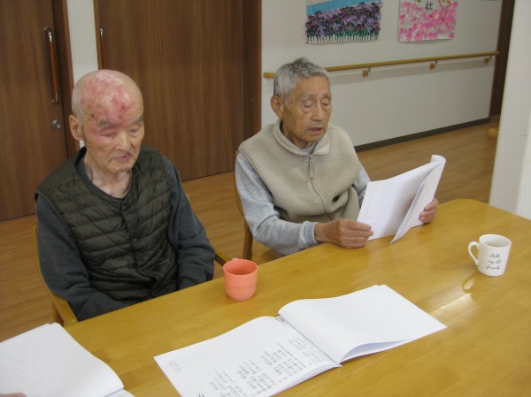 秋の里・青い山脈・荒城の月を合唱しました。声が良く出るようになりました(笑)