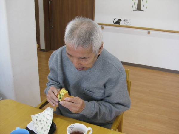 おやつに玉子ロールパンを召し上がられているご様子です( ^ω^)・・・