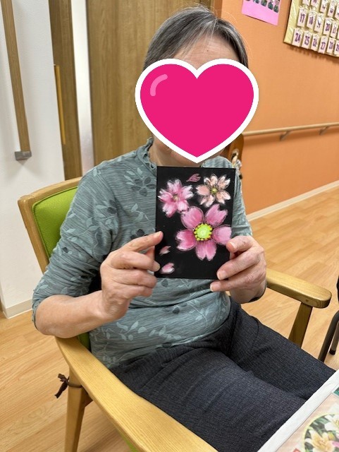 色を重ねたり、指でこすって色をぼかしたり、桜の花びらも個性的な色彩になりました。