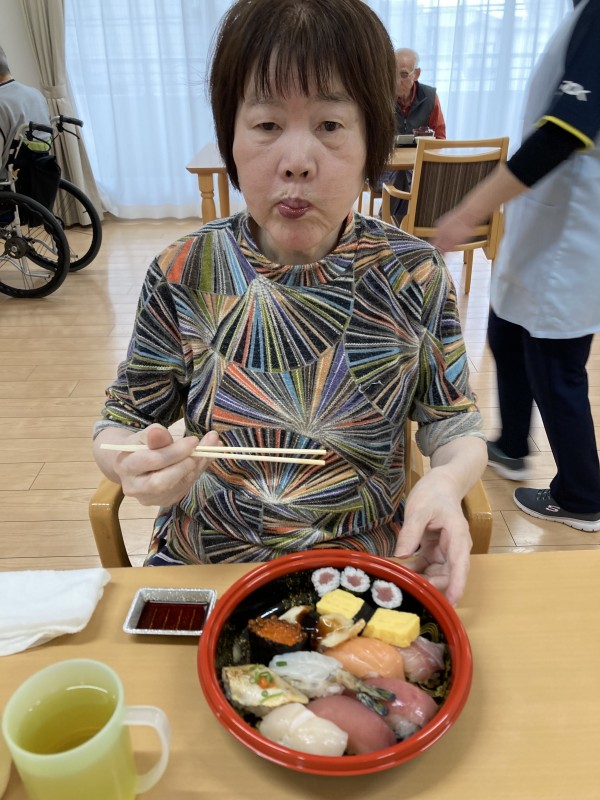 施設では、あまり食べれない特別に本マグロ中トロ本格握り寿司が提供されました。