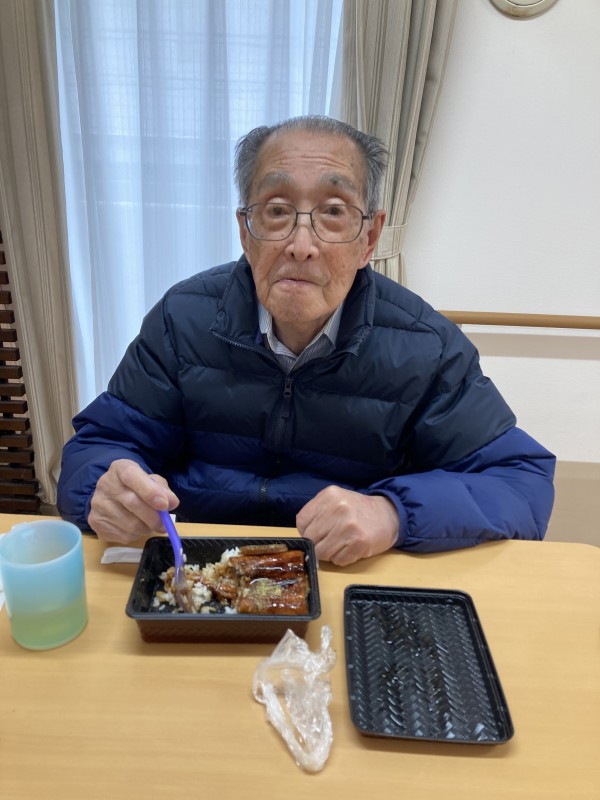 施設では、あまり食べれない特別に肉厚鰻使用うな重が提供されました。