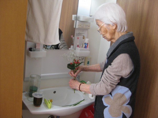 2人で仲良くシーツ交換のお手伝いができました。洗面台のお掃除もされました(*^_^*)