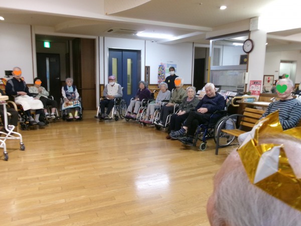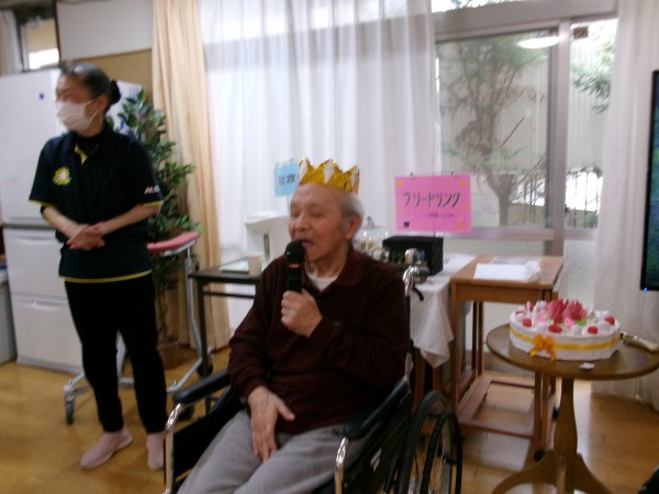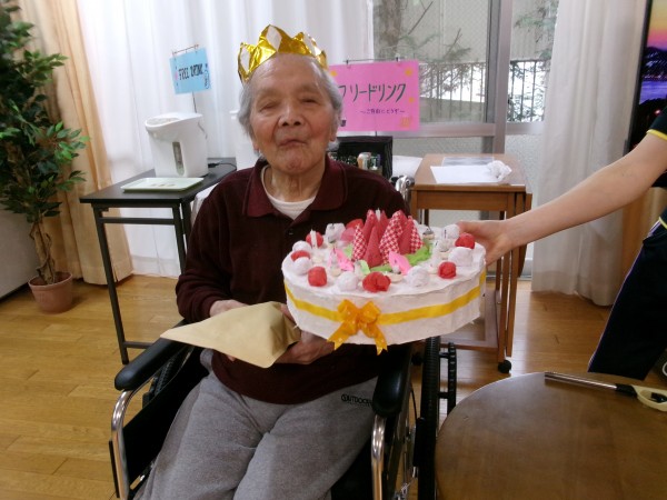 今月がお誕生日のご入居者様へ「おめでとう~」「おめでとうございます!」と皆さまより、祝福と拍手です!