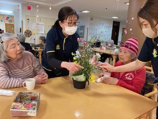 T様が生けたフラワーアレンジメントを見て、みなさん良い表情をされてましたね(´▽`*)