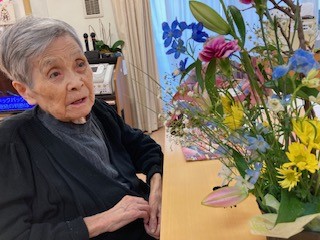 きらめき保育園で生けたフラワーアレンジメントを持ち帰り、皆さんに披露した様子をお届けします(^^)v