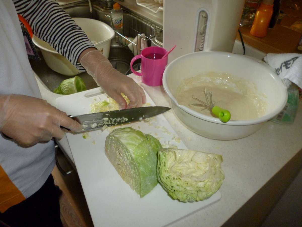 今日はF職員がレクリエーションで使用するキャベツを切っていましたので報告したいと思います!!